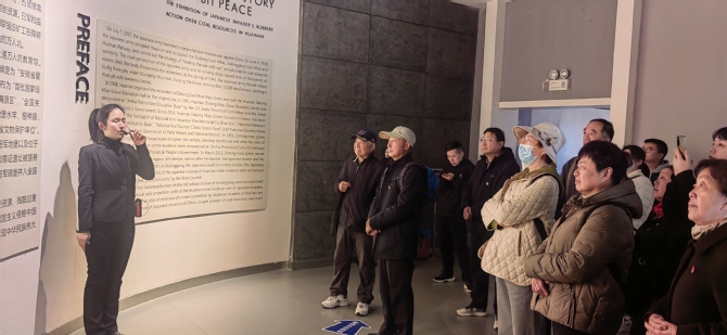 在淮南大通“万人坑”教育馆,大家跟随解说员依次参观了日军入侵、矿山沦陷、以人换煤、血腥统治、抗日战争等五个展厅和万人坑遗骸馆。馆内的一幅幅图片、一件件实物,生动地还原了那段黑暗岁月,诉说着侵略军的残暴与矿工们的悲惨遭遇。
