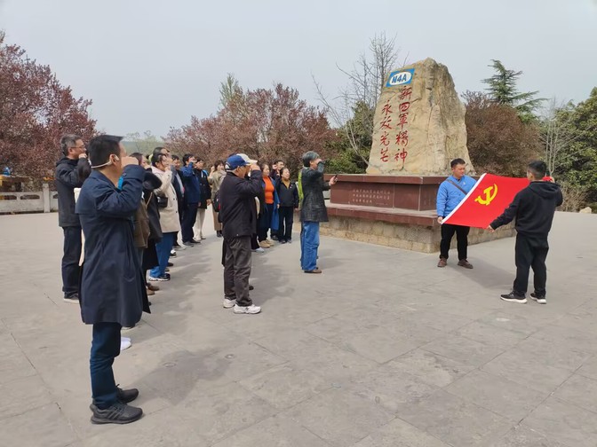 来到新四军纪念林纪念碑前,大家面朝纪念碑肃立,面对鲜红的党旗,徐燕带领大家重温入党誓词,再次郑重表达对党的忠诚和为共产主义事业奋斗的决心。