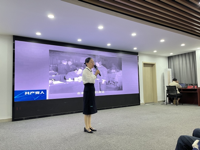 安徽省高校“优秀‘双带头人’教工支部工作室”负责人蚌埠学院淮河文化中心主任洪何苗开展了“治水安澜筑丰碑,学习治淮劳模李秀英先进事迹”党课宣讲。老党员们听得认真,不时点头称赞,深深被老一辈治淮人的坚韧精神所感染。