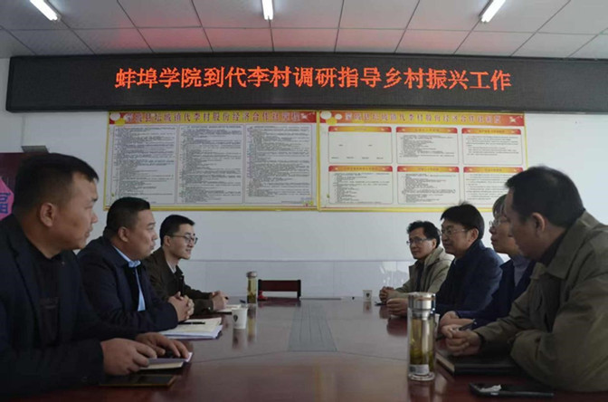 11月19日,校长张亚新前往定点帮扶单位蒙城县坛城镇代李村调研乡村振兴工作。坛城镇镇长、代李村村两委负责人陪同调研,党政办公室、工会、艺术设计学院相关人员参加活动。