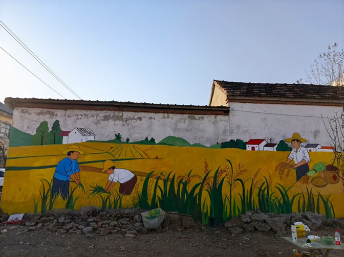 艺术设计学院党委与代李村党支部签订了党建共建协议。随行的28名学生志愿者为代李村村民休闲广场绘制了两幅墙绘,得到了村民的一致好评。(撰稿:黄栋栋;编辑:毛星懿;审核:杨安升、黄灿)