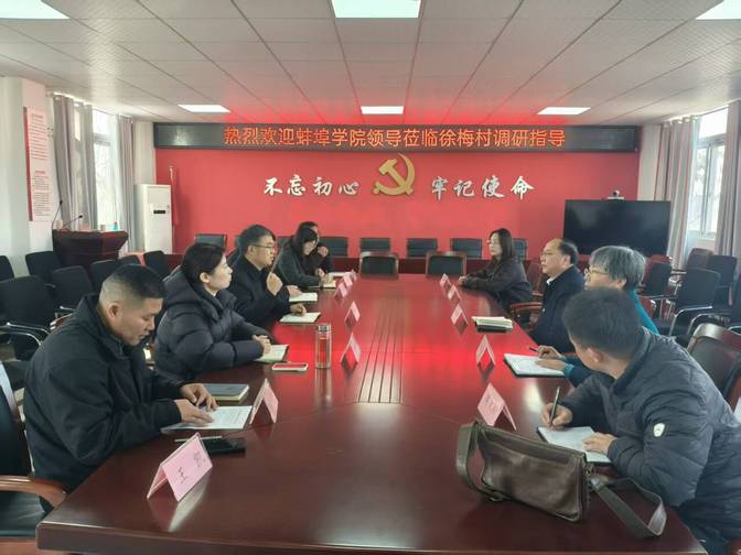 座谈会上,驻村第一书记杜庆才详细介绍了徐梅村基本概况及近期乡村振兴工作开展情况,全面汇报了工作推进中的成效、难点与下一步规划。镇领导结合地方发展实际,就校村协同推进乡村振兴提出了具体期望。陈国龙在讲话中表示,蚌埠学院将持续发挥高校资源优势,精准对接徐梅村发展需求,在人才、技术、智力等方面提供全方位支持,助力徐梅村实现更高质量的乡村振兴。